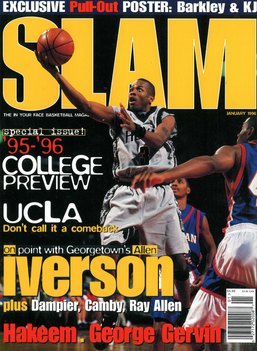 It’s impossible to reference the most impactful college teams without including Allen Iverson and the Georgetown Hoyas. We’ve got a storied history with Bubba Chuck, which started in ‘96 with Issue No. 9 when SLAM Shakespearean Scoop Jackson lobbied for the first of AI’s eventual 15 covers. Led by the infamous John Thompson, Hoya Paranoia was synonymous with the iconic kente cloth-stitched threads and high expectations, entering the season with a Top Five preseason ranking. With AI returning for his sophomore campaign in ‘95, the basketball ecosystem gravitated to Washington D.C. And outside the nation’s capital, everybody wanted to be down with the Hoyas. Replica Nike unis, baggy gray and navy sweat suits. Georgetown was more than a basketball powerhouse; it was a culture—a culture led by Allen Iverson, a simply unstoppable force.