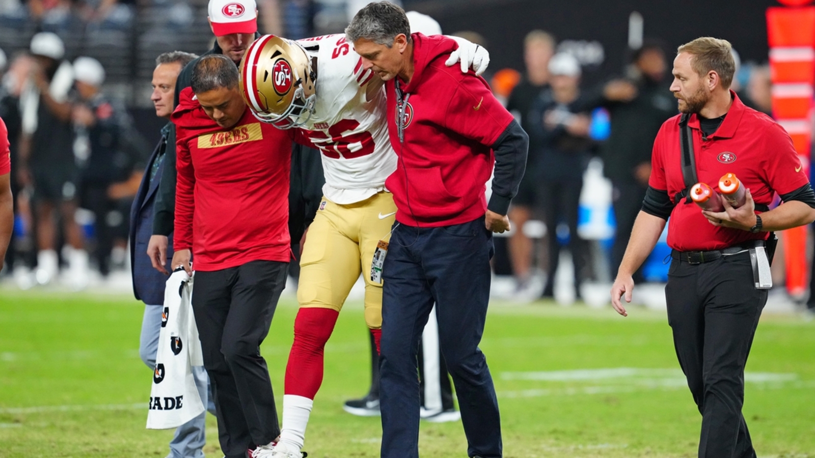 Prized free-agent acquisition Leonard Floyd avoided a serious knee injury in San Francisco’s preseason finale, 49ers coach Mike Shanahan said Sunday. Floyd injured his right knee during the first quarter of Friday’s 24-24 tie against the host Las Vegas Raiders.