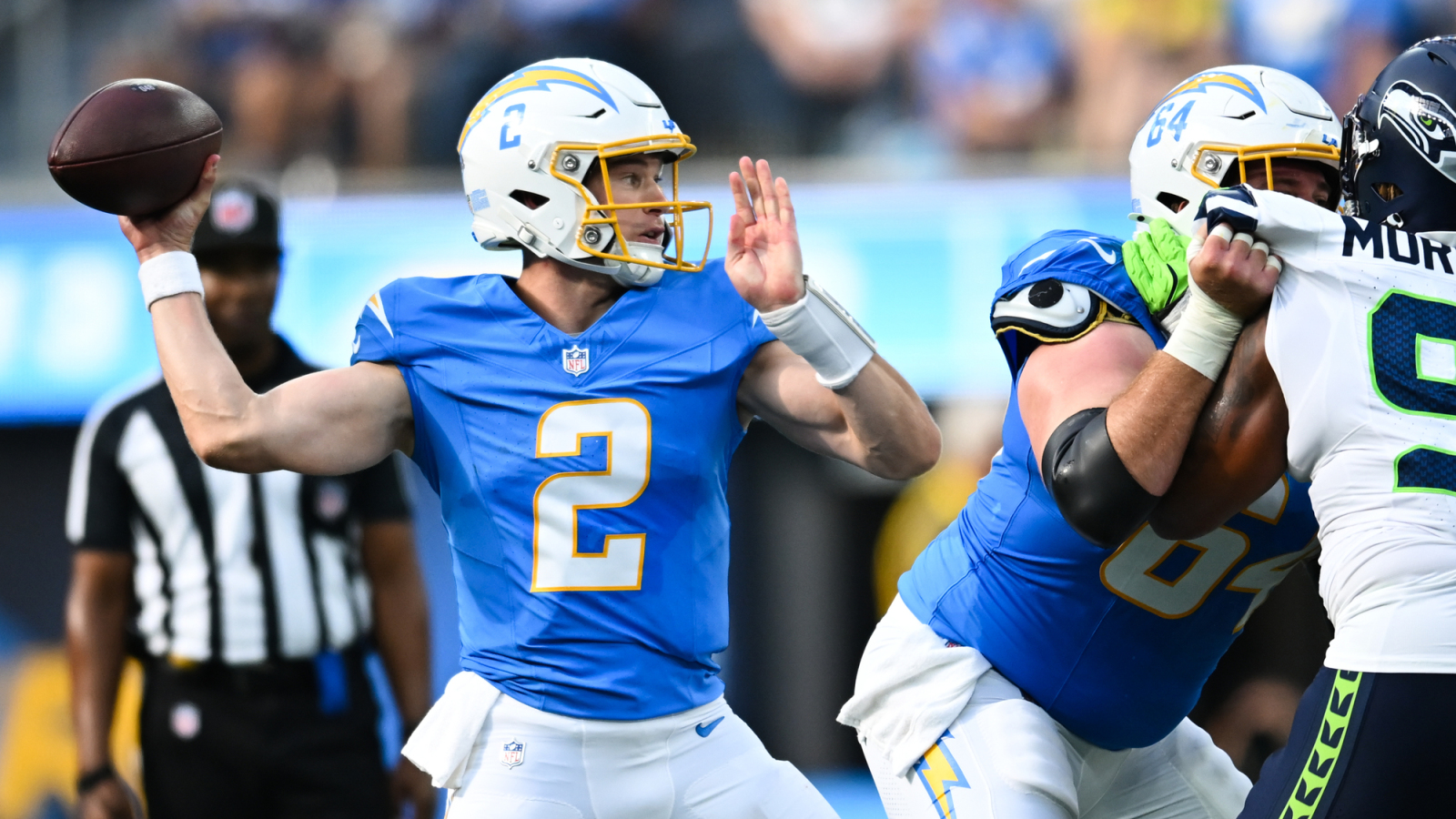 In their first week, the Los Angeles Chargers quarterbacks took on 14 pressures. And their play reflected the amount of duress they were under. In addition to the three sacks Easton Stick, Max Duggan, and Luis Perez took, they combined for a 45.8 completion percentage for 133 yards and just five first downs through the air.