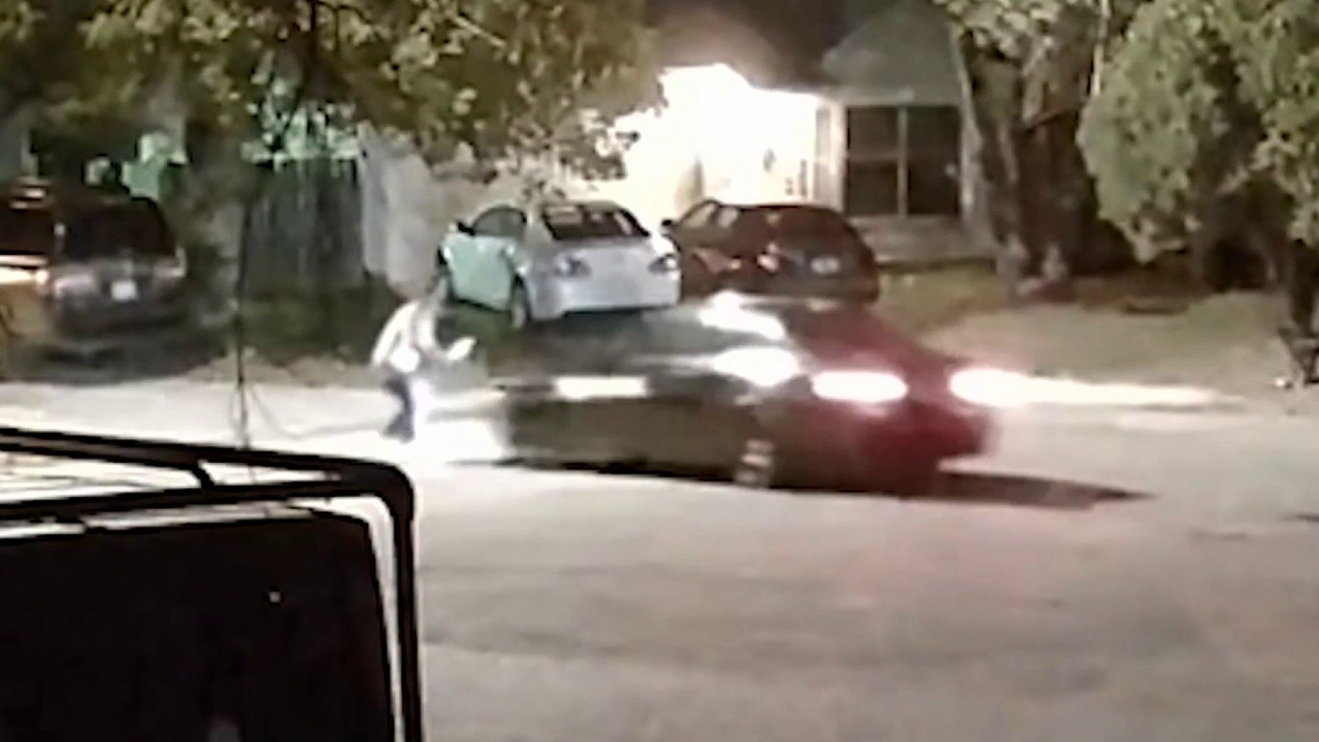Home security video from the scene shows a man being struck by a car before a fistfight broke out in the middle of the street.