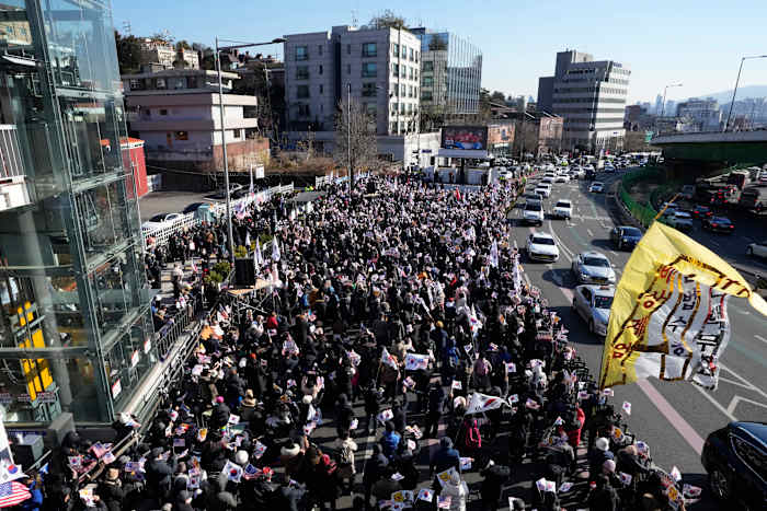 A growing number of Yoon’s supporters were again gathering near his residence on Thursday morning amid a heavy police presence, waving small South Korean and American flags and holding signs opposing his impeachment. There were no immediate reports of clashes or major disturbances.