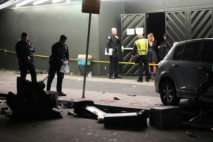 It was not immediately clear if the driver had been shot before or after the crash or why he drove into the crowd, a Los Angeles Police Department spokesman said.