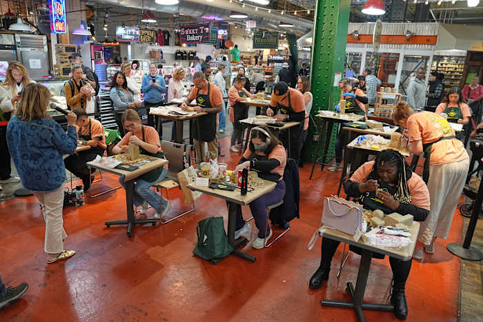 The celebration of all things scrapple at Reading Terminal Market began with the contest to fashion art from 5 pounds (2.25 kilograms) of scrapple.