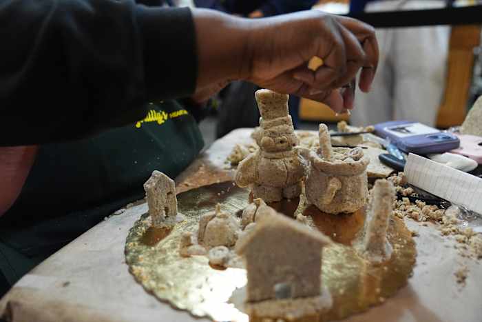 Moser’s lumps of indistinguishable football players won him a trophy and a $100 gift card. The public is also getting a chance to weigh in on Saturday, when the artworks were to be on display at the market. Last year’s scrapple sculpting contest winner was a cookie jar decorated with a rooster and an egg inside.