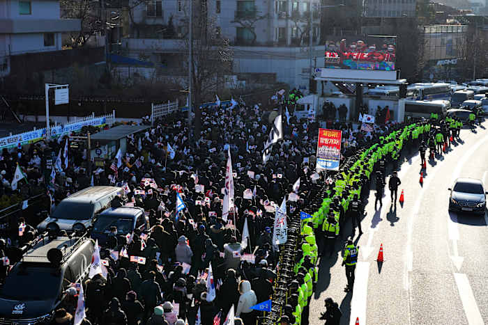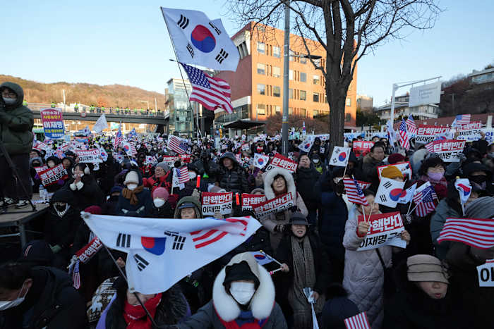 Thousands of police officers gathered at Yoon’s residence on Friday, forming a perimeter around a growing group of pro-Yoon protesters who braved subfreezing temperatures for hours, waving South Korean and American flags while chanting slogans vowing to protect him. There were no immediate reports of major clashes outside the residence.