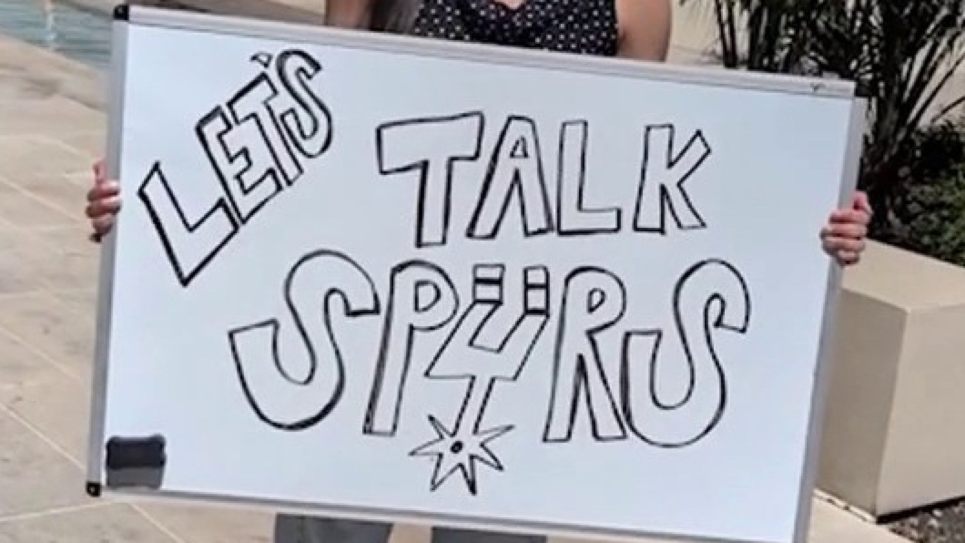 For Victory Friday, KSAT 12 Sports took a trip to Hemisfair to chat with Spurs fans with a sign that said, “Let’s talk Spurs.”