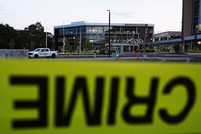 In Robinson’s hometown, about 240 miles (390 kilometers) southwest of campus, a law enforcement presence was significantly diminished Saturday after the FBI executed a search warrant at his family’s home. A gray Dodge Challenger that authorities say Robinson drove to UVU appeared to have been hauled away.
