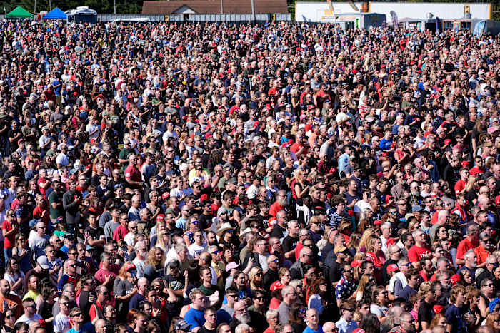 A massive crowd stood shoulder to shoulder from the stage to the press stand several hundred yards away at the event billed as a “tribute to the American spirit.” Area hotels, motels and inns were said to be full and some rallygoers arrived Friday.