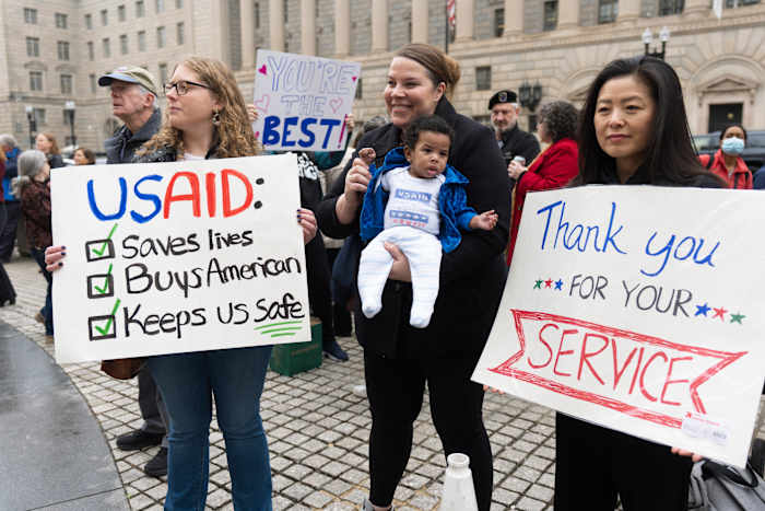 Juliane Alfen, 25, left her workplace at the U.S. Agency for International Development in tears, exiting to cheers from supporters who protested the abrupt way one of the world’s preeminent aid organizations had been decimated.